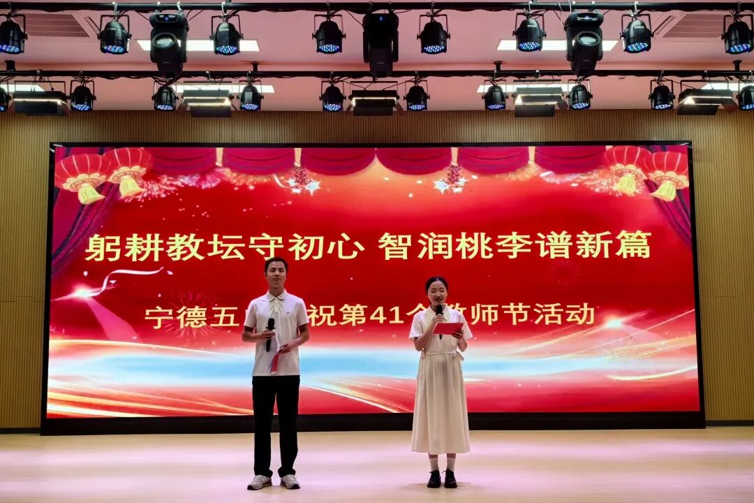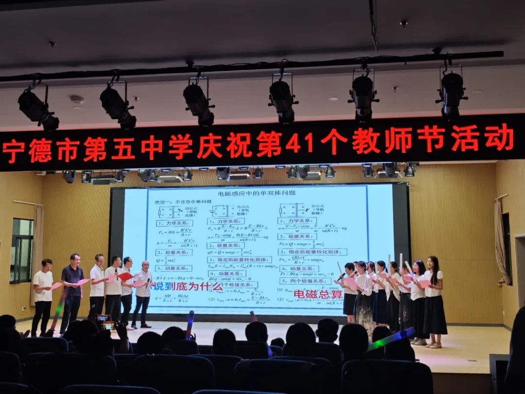 近日,宁德五中围绕“以教育家精神铸魂强师,谱写教育强国建设华章”这一主题开展系列实践活动。其中,于2025年9月12日晚举办了“躬耕教坛守初心,智润桃李谱新篇”主题庆祝活动,全体师生员工欢聚一堂,展示风采,其乐融融。 教师节快乐 01 致辞寄情:致敬每一位耕耘者 晚会伊始,学校工会主席黄友波发表致辞,向辛勤耕耘在教育一线的全体教师致以节日的祝福与崇高的敬意。他回顾了过去一年老师们在教学、科研与育人工作中的默默奉献,肯定了大家为学校发展与学生成长所付出的心血,并寄语全体师生珍惜师生情谊,共同营造温暖的校园氛围。 02 表彰励行:以榜样力量引航 致辞过后,晚会进入颁奖环节。学校对过去一年表现突出的优秀备课组与先进教师进行了表彰,以此激励全体教职工以榜样为力量,坚守育人初心,勇担教育使命。 03 汇演逐光:三篇章绘师者风采 随着灯光流转,教师节主题汇演精彩启幕。整场汇演以“师道传承”“师爱绵长”“师魂永驻”为三大篇章,师生用朗诵、歌曲、话剧等多样形式,展现五中风采,传递对教师职业的崇敬与热爱。 语文组师生深情朗诵经典名篇《师说》,重温师道内涵。 英语组以活力满满的歌曲《everybody》点燃全场气氛。 数学组原创朗诵《数韵师心——致高中数学人》,将数学之美与育人初心巧妙融合。 物理组改编歌曲《全是爱》,用幽默风趣的歌词诠释师生间的温暖互动。 生物地理组合唱《教师阵线联盟》,展现跨学科教师的团结与热情。 学生会戏剧社带来话剧《教师》,以真实的校园故事再现教师日常的辛劳与坚守,引发全场共鸣。 学生会广播站朗诵《以心敬师,以行致谢》,用青春之声传递对教师的感恩之情。 何安法书记、陈再发校长领衔行政组登台,朗诵《八秩薪火传 杏坛烛光远》,在回望抗战胜利峥嵘岁月、缅怀革命先烈中,阐释新时代教育工作者践行教育家精神、以红色信仰铸魂育人的使命担当。 退协组老师演唱《红枣树》,醇厚的歌声里满是对教育事业的眷恋。 历史政治组带领全场合唱《歌唱祖国》,激昂的旋律将晚会气氛推向高潮,凝聚了师生的爱国情怀与集体荣誉感。 04 温情落幕:凝聚教育新力量 教师节快乐 整场晚会在温馨与感动中落下帷幕。此次汇演不仅是一场视听盛宴,更是宁德五中“尊师重教、师生同心”校园文化的生动写照,既让老师们感受到了节日的喜悦与职业的荣光,也进一步拉近了师生距离、凝聚了管理层与教职工的合力,为学校教育事业的持续发展注入了温暖而坚定的力量。 END 供稿:工会 编辑:办公室 初审:周昌荣 颜元智 复审:何安法 陈再发