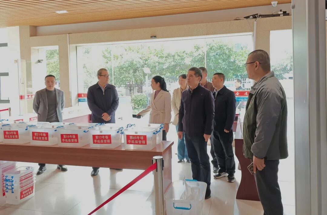 为确保2026年全国硕士研究生招生考试工作平稳有序进行,12月18日上午,福建省教育厅副厅长黄建顺、基教处处长余志丹,在宁德市教育局局长郭海鸣、副局长杨日福,蕉城区教育局局长黄青松等陪同下,莅临我校检查指导研究生考试考前准备工作。 黄建顺副厅长一行深入校园,实地察看了视频监控室、主考室等重点区域,重点核实了智能安检设备、视频监控系统、应急设施的配备与运行状态,仔细询问了考务人员调配、考生服务保障、安全保密措施等工作细节。学校党总支书记何安法向检查组汇报五中考点的准备情况。 检查组对我校考前准备工作的规范性、细致性给予了充分肯定,强调研究生考试是国家选拔高层次人才的重要途径,要严守考试公平底线,筑牢安全防线,同时要求我校进一步细化应急预案,完善服务保障,为考生营造安全、有序、舒适的考试环境。 我校将严格落实检查组的指导意见,以高度的责任感压实各项工作责任,抓牢抓细抓好各项准备工作,确保本次研究生考试平稳顺利进行,切实维护考试的公平公正,为考生营造一个安全、舒心的考试环境。