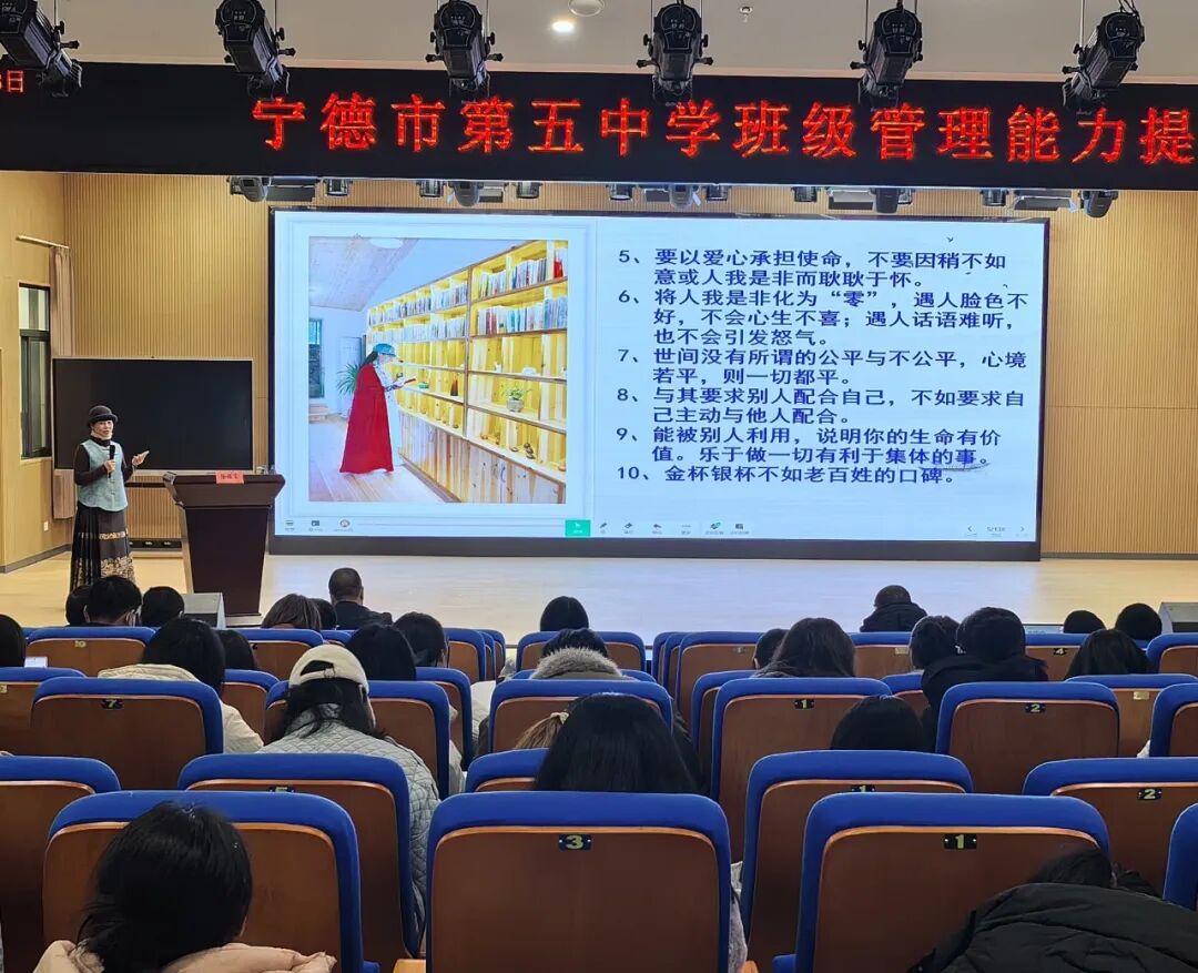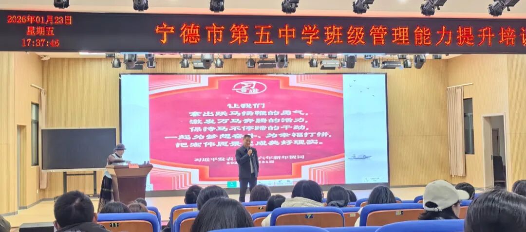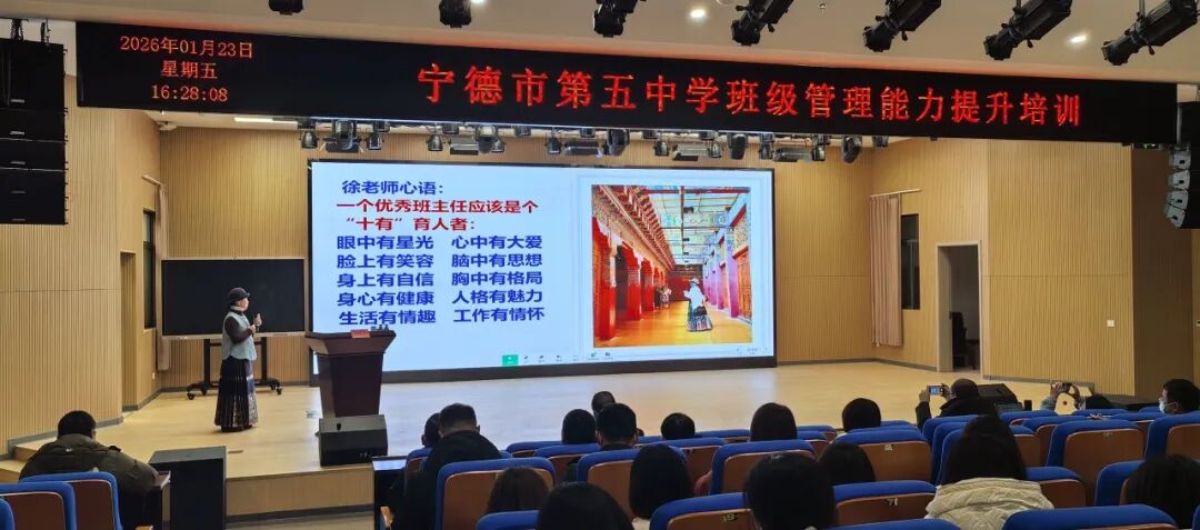 2026年1月23日,宁德五中报告厅内,一场以“心怀大爱 智慧育人——班主任专业成长感悟”为主题的班级管理能力提升培训在此成功举办。本次活动特邀国家级骨干班主任、宁德市优秀青年人才、蕉城区专业技术拔尖人才、潘振东教育突出贡献奖获得者徐诺言老师主讲。全校行政人员、班主任、年段长、80后骨干教师及蕉城区部分学校教师全程参与,共同开启了一场关于教育智慧与育人情怀的深度对话。 作为宁德市蕉城中学资深班主任,徐诺言老师凭借三十多年一线教育经验,先后荣获多项殊荣。讲座伊始,徐老师以“班主任的幸福感与自我提升”破题,提出“一个幸福感满满的班主任才能培养出人格健全的合格公民”的教育箴言。她通过自勉、静思等具体方法,引导在场教师思考如何通过内在修炼提升职业幸福感。 培训现场 在核心内容分享环节,徐老师系统阐释了“十有”育人者标准:眼中有星光、心中有大爱、脸上有笑容、脑中有思想、身上有自信、胸中有格局、身心有健康、人格有魅力、生活有情趣、工作有情怀。这一标准引发强烈共鸣。 培训现场 针对中等生培优这一教育痛点,徐老师创新提出“环境营造+潜能开发”双轮驱动策略。在环境营造方面,她展示的“全员保洁总动员”案例中,通过彻底清洁班级环境、整齐摆放课桌椅,成功营造出积极向上的学习氛围;在潜能开发层面,则通过信心树建立、目标墙设计、小组竞争机制等具体方法,帮助中等生激发学习兴趣。 本次讲座呈现出三大显著亮点:理念新颖性体现在“十有”标准对传统育人观的创新发展;实践指导性体现在中等生培优、家校合作等策略的可操作性;情感共鸣性则通过真实案例引发强烈情感认同。让与会教师收获了具体可用的班级管理方法,对教育理念有了全新认识。 培训现场 宁德五中何安法书记在总结发言中深情回顾了讲座的精彩瞬间。他指出:徐诺言老师用三十多年坚守诠释了“心怀大爱”的真谛,用无数鲜活案例展现了“智慧育人”的魅力。今天的讲座不仅是一次教育智慧的盛宴,更是一次教育初心的唤醒。 何书记特别强调:班主任工作是学校教育的基石,是塑造学生人格、培养时代新人的关键力量。希望全体教师以徐诺言老师为榜样,将“大爱情怀”融入日常教育实践,用“教育智慧”破解育人难题,共同培育有温度、有厚度、有高度的时代新人,在平凡的岗位上书写不平凡的育人故事。 这场持续三小时的讲座,不仅为宁德五中班主任队伍注入了新的智慧动能,更在每位教育工作者心中播下了“心怀大爱”的种子。正如徐诺言老师所言:“教育是爱的事业,更是智慧的事业。当我们以大爱为根基,以智慧为路径,就一定能培养出更多人格健全、能力全面的优秀学子。”这场关于爱与智慧的对话,必将转化为推动宁德五中教育事业高质量发展的磅礴力量。 — END — 供稿:政教处 编辑:政教处 初审:章 禹 颜元智 复审:何安法 陈再发